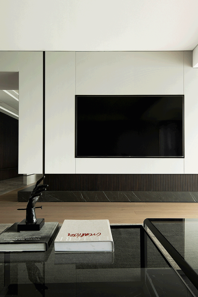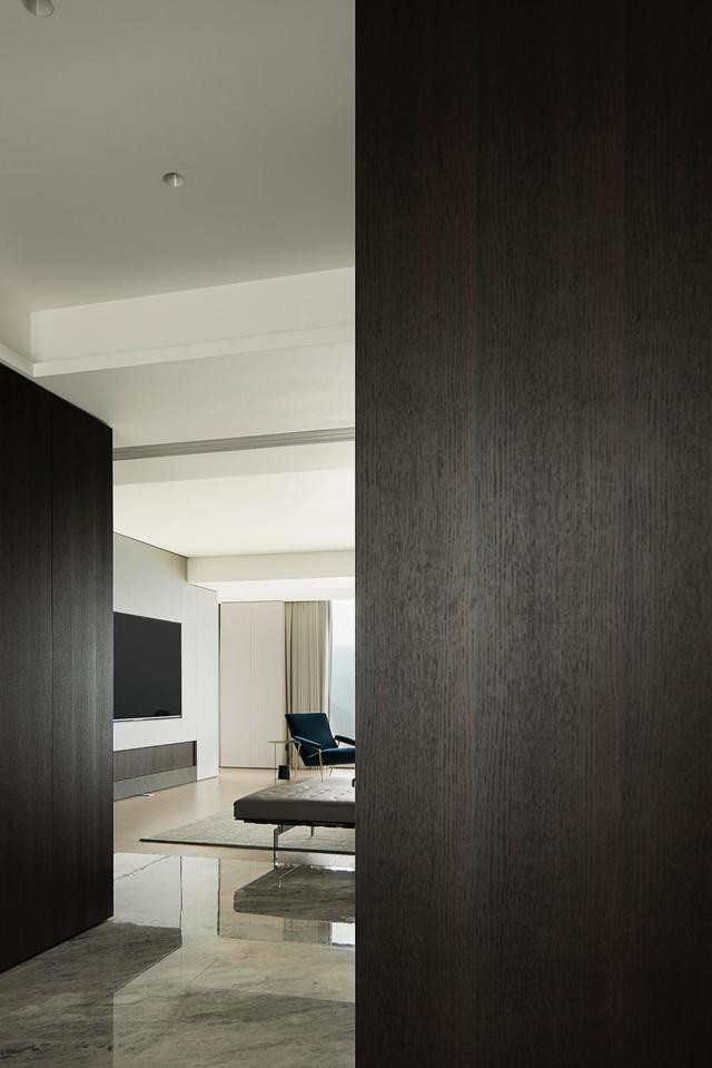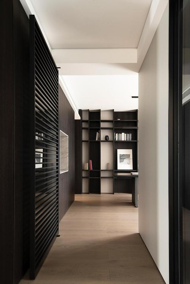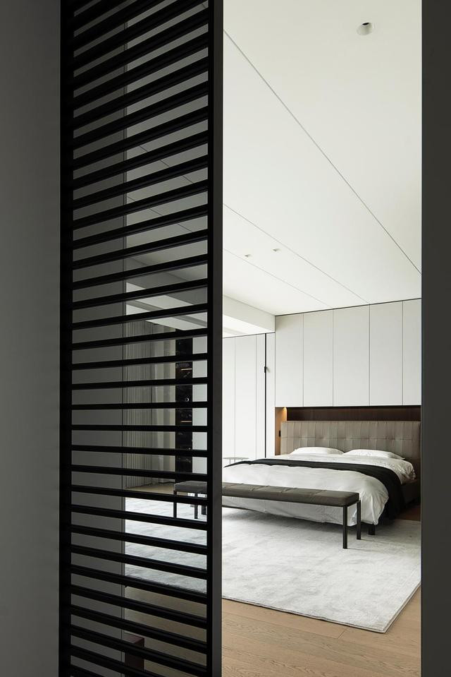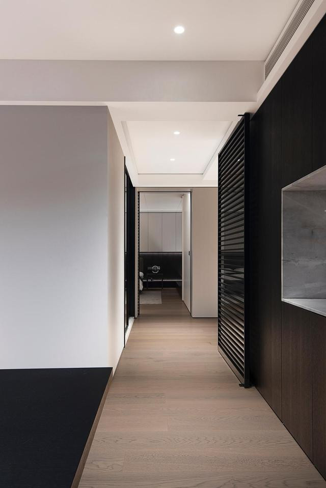 简约的色调与大面积的储物柜相得益彰,满足了生活的储物需求。同时,独特的格栅门、衣橱和搁架等细节之处也充满了生活感与品质感。